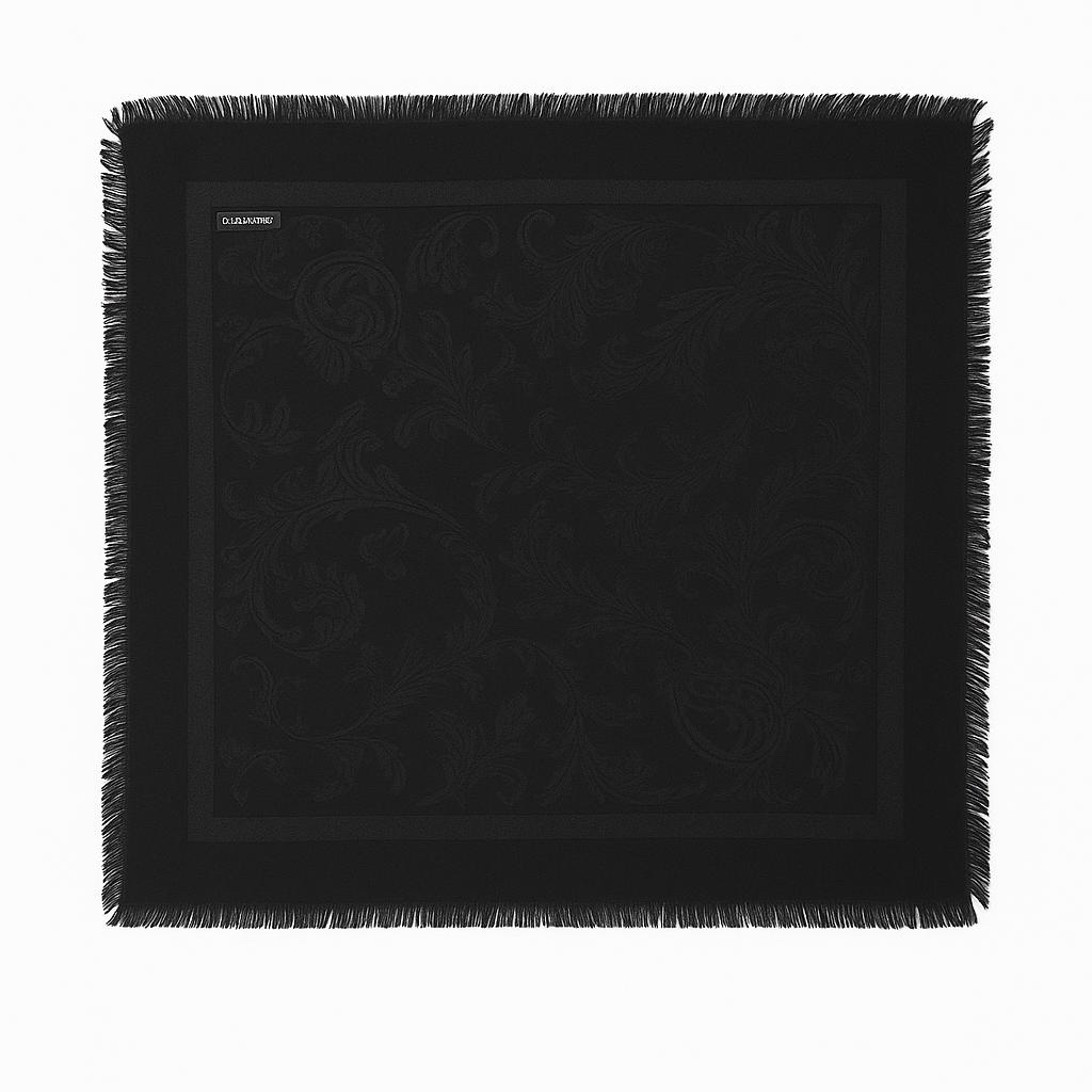Batic din cașmir premium, negru, cu model floral discret și franjuri elegante pe toate laturile. Dimensiune 75×75 cm – accesoriu versatil pentru ținute rafinate.