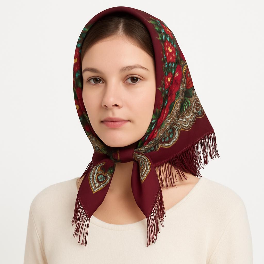 Acest batic din cașmir 95×95 cm este o alegere deosebită pentru iubitorii de eleganță autentică. Realizat din material moale și luxos, baticul impresionează prin nuanța sa roșu-burgundy și prin imprimeul floral bogat, cu trandafiri roșii și galbeni, completat de detalii paisley aurii. Franjurii fini adaugă o notă suplimentară de delicatețe și rafinament.